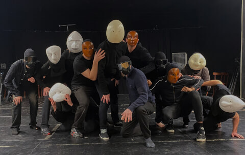 Une grammaire corporelle spécifique pour une puissante présence scénique : avec le jeu en Éclaté, en Affilées, en Murmuration, en Parallèle et en Écrans.